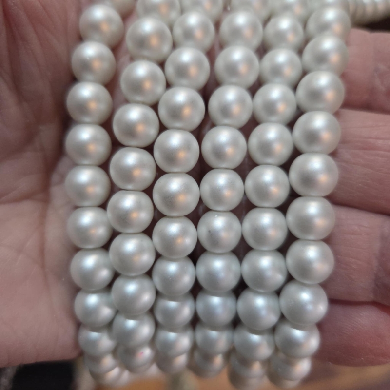 Soort: Parel Kleur: Wit (saijtnglans) Maat: 8MM Materiaal: Glas Prijs per: Stuk